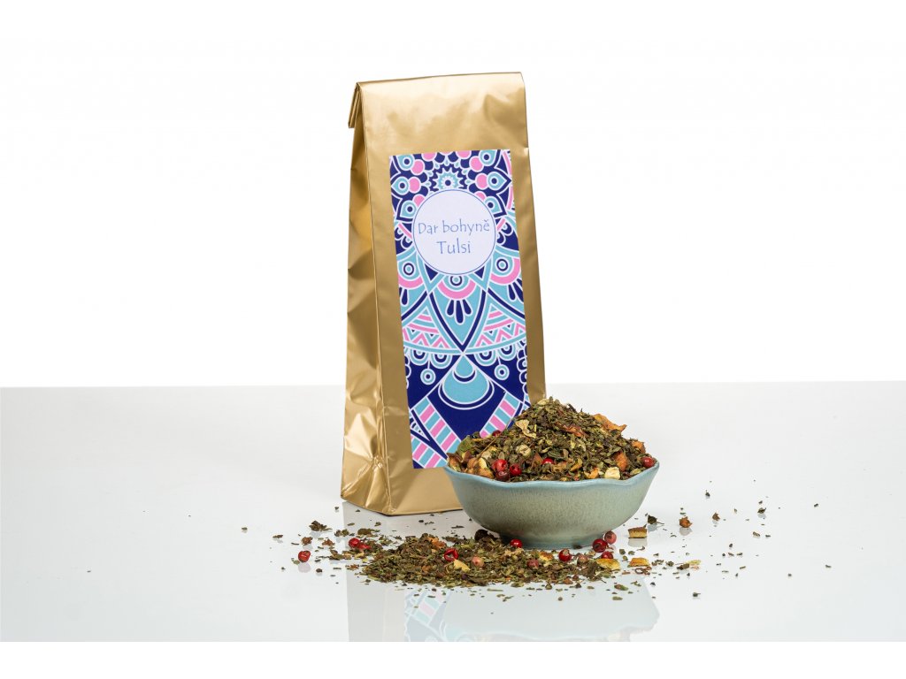 Z technologických důvodů bylinnou směs Dar bohyně Tulsi dodáváme aktuálně ve zlatých čajových sáčcích.